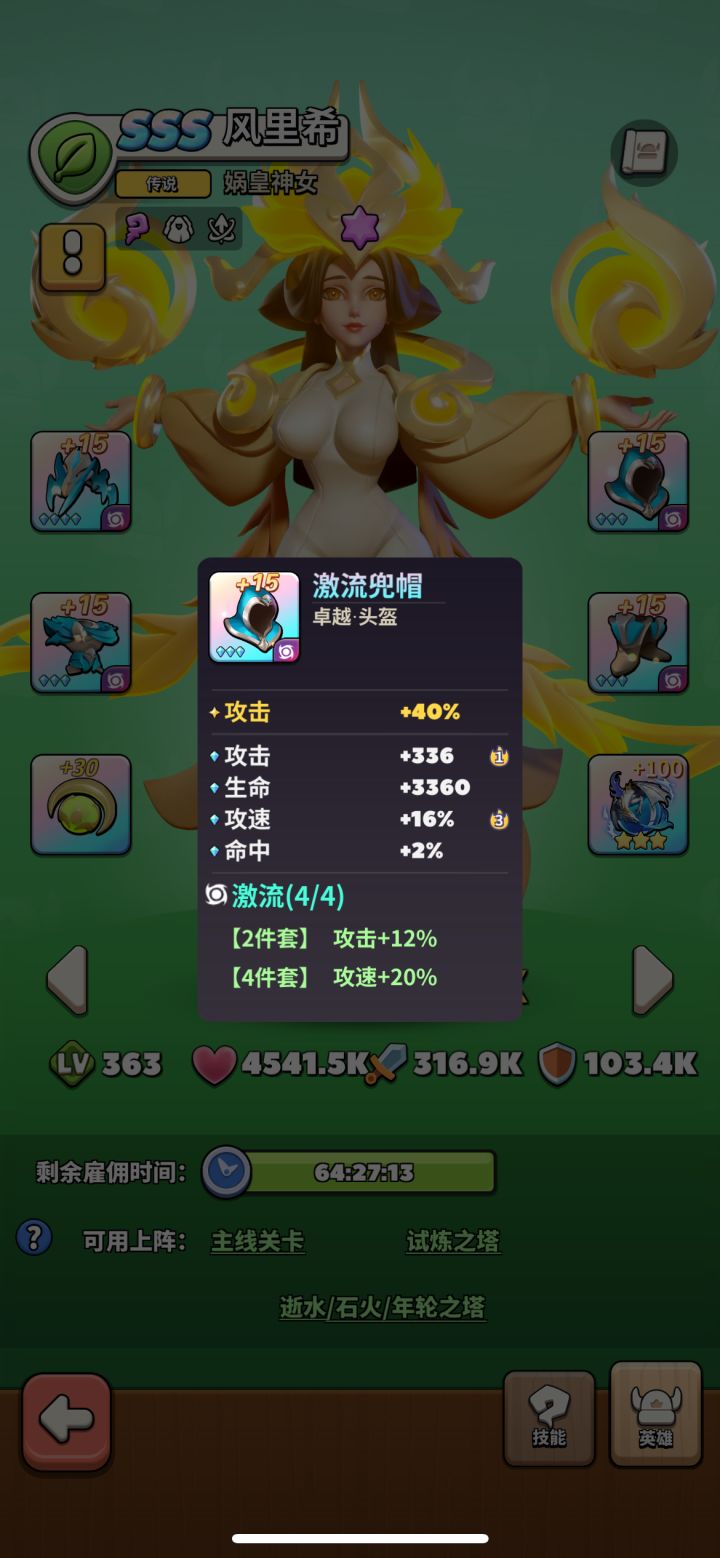 【天命套装】装备套装前期优先熔炼暗影套,输出英雄在推图28章之后优先搞激流套