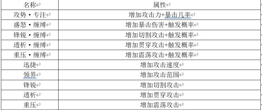 因为绿色、蓝色、紫色的相同魔之楔仅是属性数值的不同,加成属性均为一致,下文仅提供属性,不提供具体数值:
