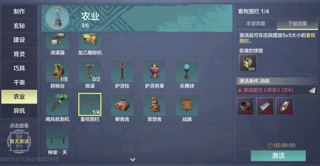 激活后可增加庄院内摆放的畜牧围栏数量,庄园内最多可同时存在2个畜牧围栏。