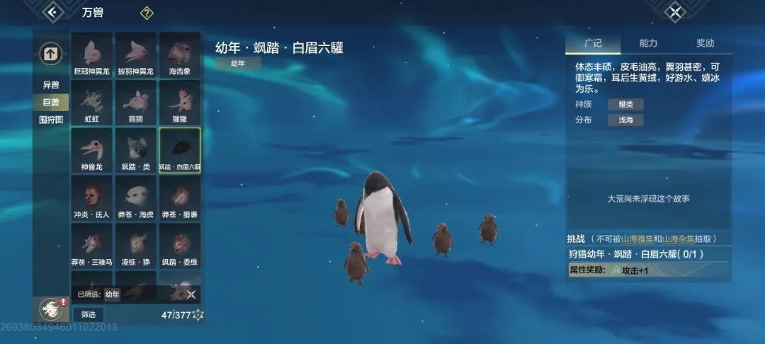 PS:【山海经-万兽-巨兽】处可查看哪些巨兽有幼年版本,以及它们的分布区域、变异部位,需要特定变异部位的旅者可查看【山海经】选择养殖目标哦~