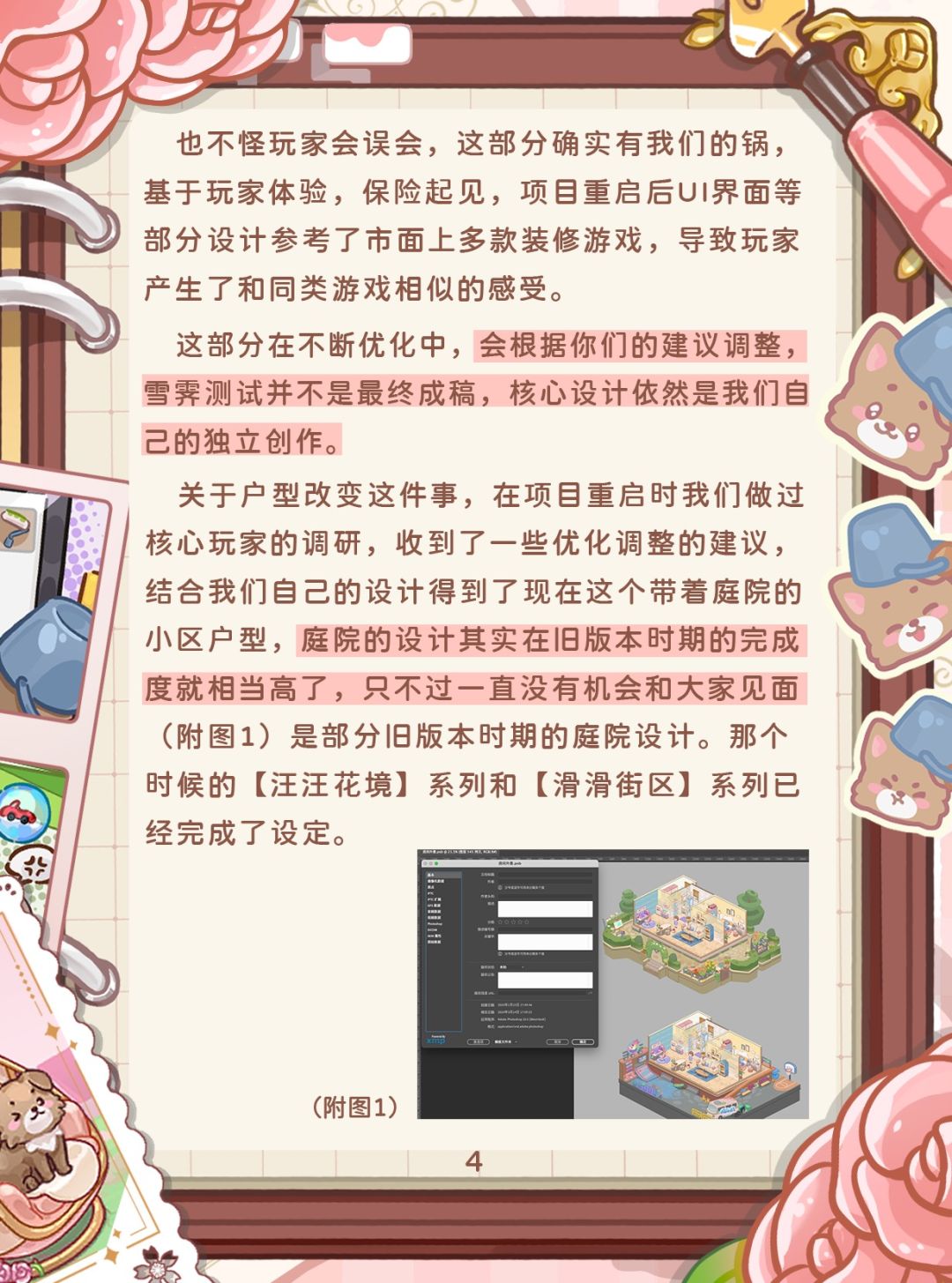 2、尊重其他游戏,但我们的设计过程独立。我们很早就做完了部分庭院格局的设计了,也因为技术原因改掉了房间分割的设计,现在的版本是初稿,后面会根据大家的建议优化的;
