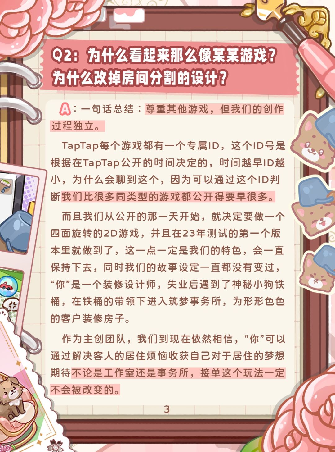 1、在各种客观原因的压力下,我们改成了能兼容更多玩家的玩法,对于原来的工作室模式,我们会谨慎考虑进行修改,加强大家的经营体验;