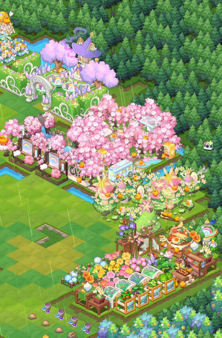 亚麻毕业了,营地功能区空出来了好多位置,于是选择简简单单造了个景w