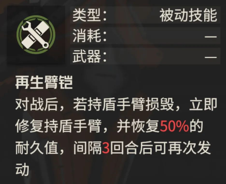 接着我们来说凌波的专武,其第一个效果是可以立刻修复并回复持盾手臂血量,这个效果在防守时或者是用大盾进行【舍身决意】的攻击时会有更好的续航效果。