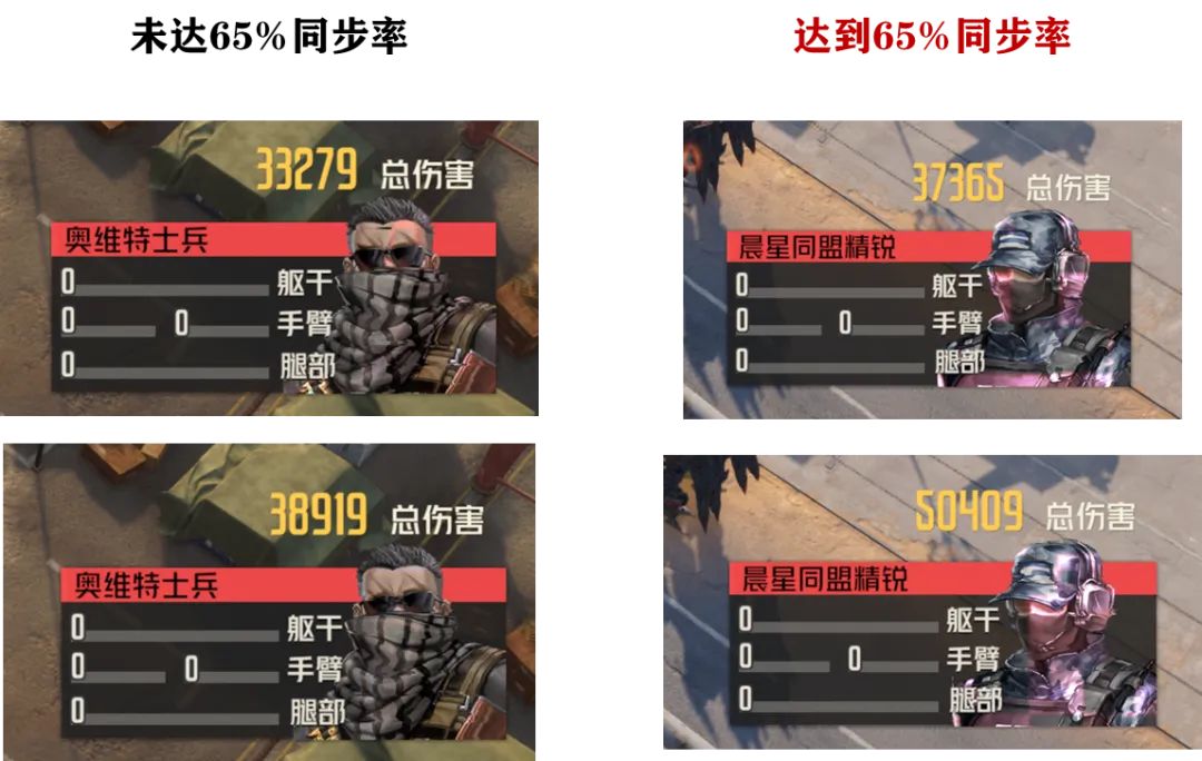 此外对于刚刚所提出的固伤提升问题,我们联系到持盾手血量的提升一起来做个对比测试,下边的左侧的上下两个伤害图分别是带“寒碑”与凌波专武后的【舍身决意】时,在没有达到65%同步率时的伤害,其中带专武的伤害是不带专武的117%左右,而右侧的上下两个伤害图则分别是不带专武和带了专武在达成65%同步率后的伤害对比,其中带专武的伤害是不带专武的35%左右,所以大家对于这个伤害的提升到底满意否呢?也欢迎留言来聊聊你的看法吧。