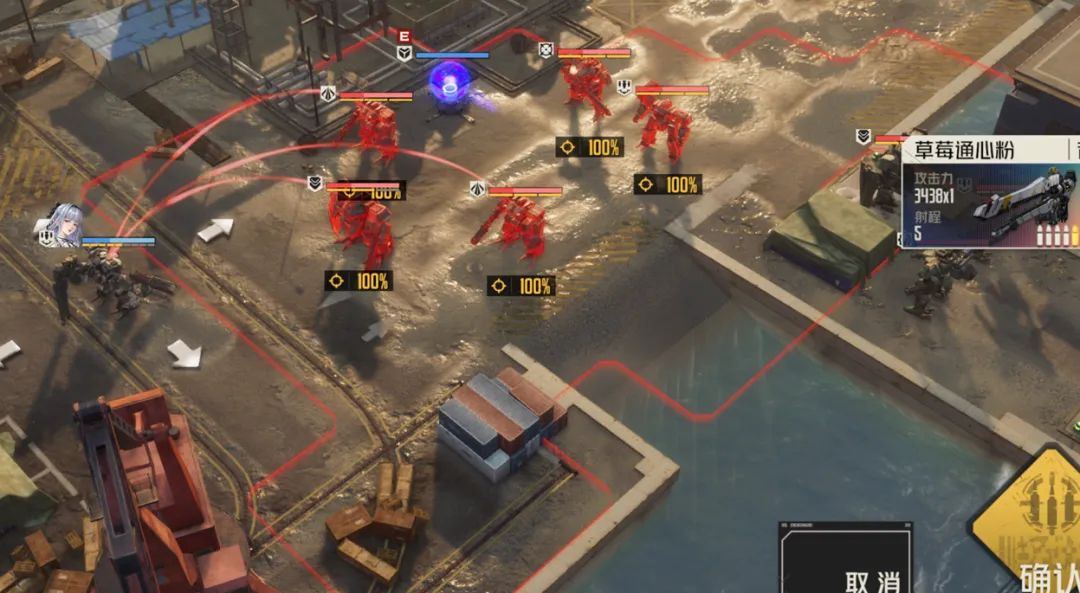 而在装备了专武之后,我们同样选择往斜上方进行折射,此时由于专武的效果菲娅的攻击就还能同时打到上方和右侧的两路敌人。