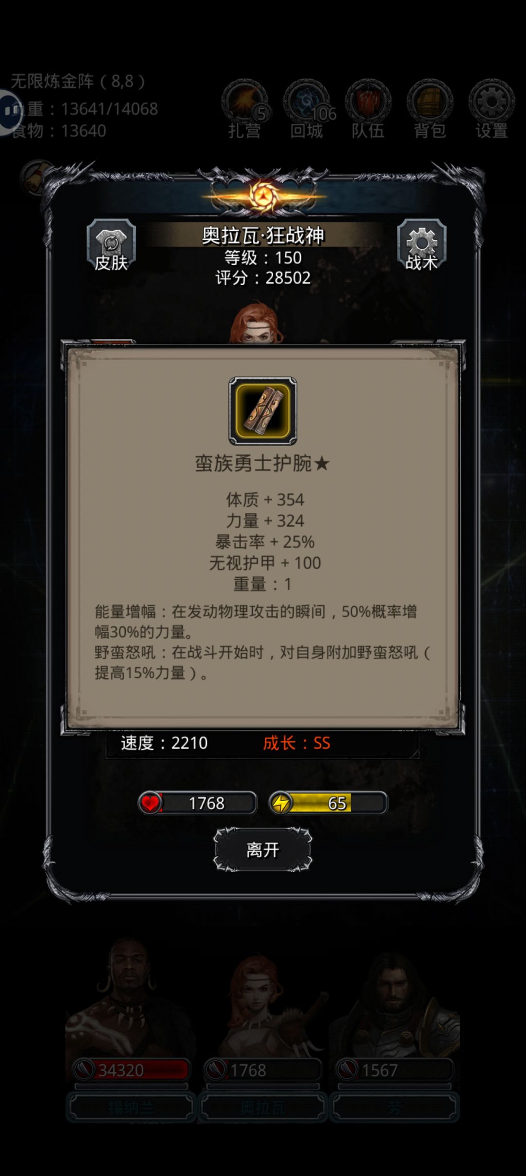 另外狂战伤害不够上火环,扛不住伤害的,像我一样做体力蛮族护腕,加上一个10单吸战利品就很稳。