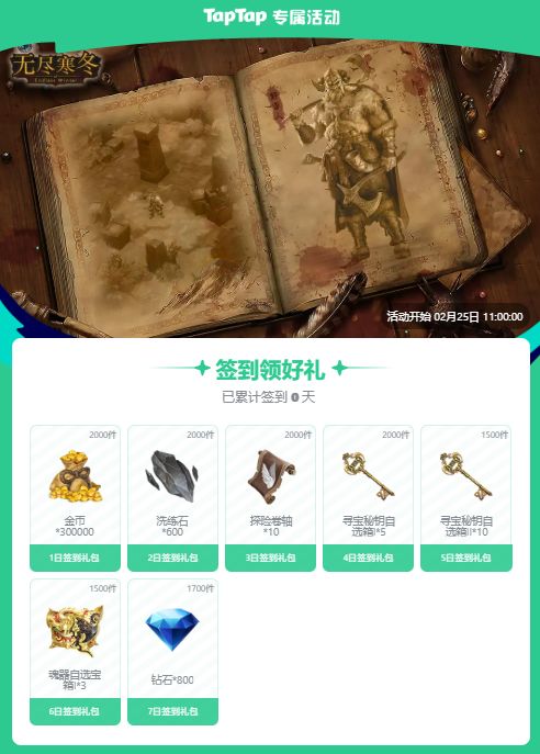 1、在活动期间点击签到礼包进入签到页,再点击下方的“签到”即可参与。