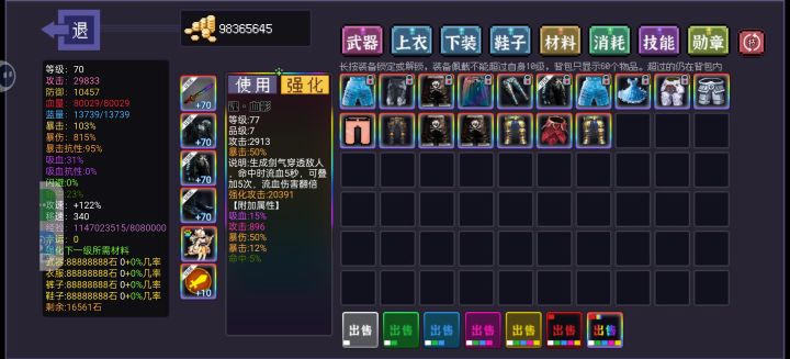 魂血影是目前看来最强武器,包括以后也难出能超过的,数值机制相当于攻击*2再叠加流血层数,只有在满层的时候才会触发攻击*2,2.3w攻就能打穿海盗4.5w防御造成伤害,所以刷死神留徽章等高级地图开了换是必要的。