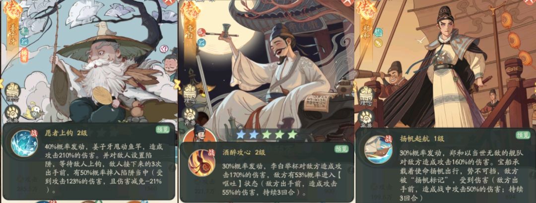 名士:除了几位超模角色外,其余推荐带多段伤害的名士,例如姜子牙、李白、郑和这些,在对面出手前给予伤害的!!