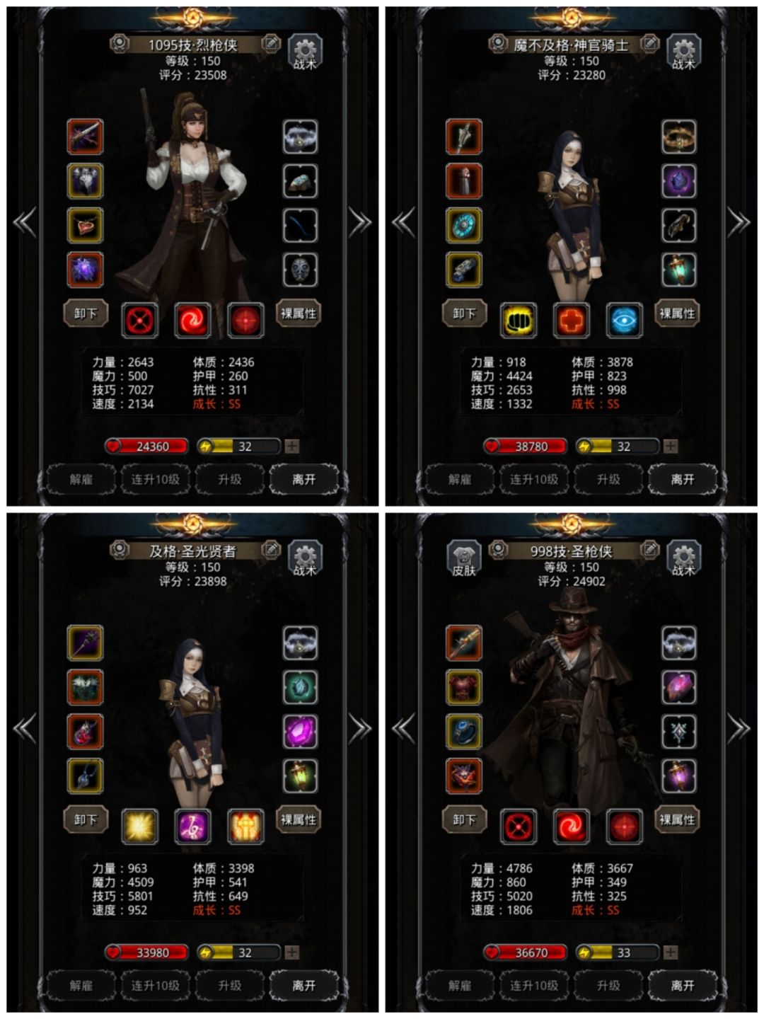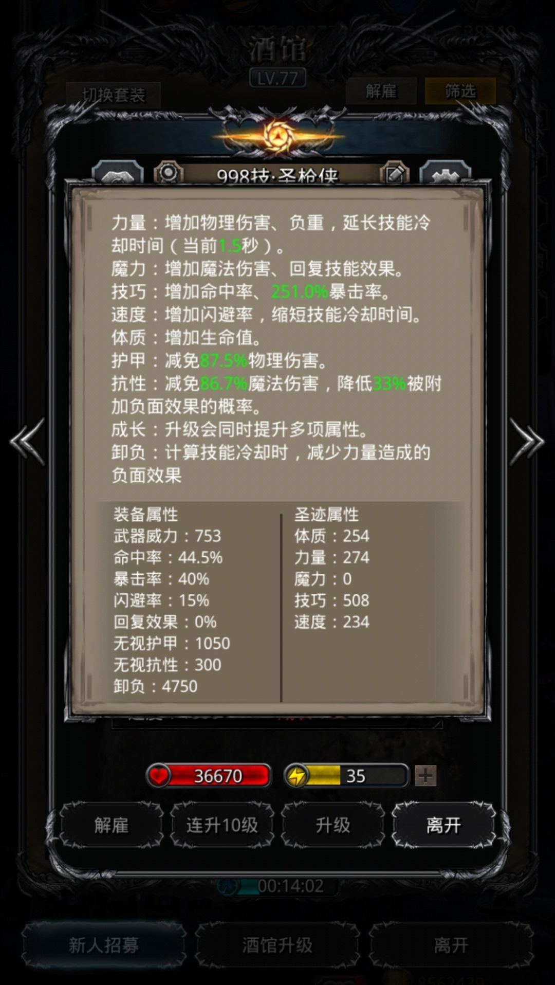 圣枪:堆力和技巧。控制0力速,然后是技巧和命中。带150无视魔石。(3体7.5命中3物伤+卷轴的9.5力10单吸)