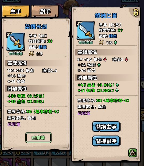 武器的选择一般是新手容易忽略的一个地方,新手一般更加关注耐力,关注怎么能更快地去到高级的挂机点!前3天挂机点更换会很频繁,越往后,可能在一个点要挂好几天,那么升级的效率就成了关键!除去正确的技能摆放之外,武器的选择可能会忽略,但是这个也是影响效率的一个关键因素!特别是盗贼和战士!