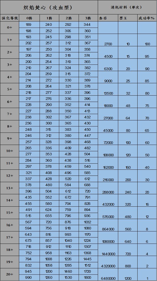 专属偃兵强化数据