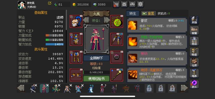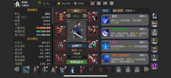其他心得:面对boss最好全员技能一起开能打出较高的伤害 装备没到60之前勤换勤卖 金币可以买宝石和灵石和强化60以后的装备 钻石…很不经用 其他看大佬补充吧