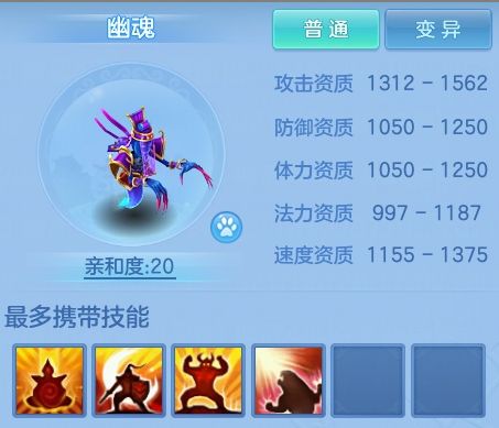 初始技能格子数量是宠物价值的核心指标。变异宠物最高可达6技能(普通宠物5技能),建议新手优先选择满技能变异宠物。例如65级可捕捉的凤凰,速度资质上限达1690,天生携带6技能时即具备极高培养价值。