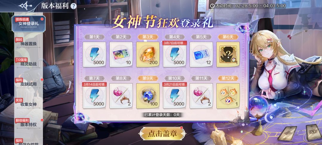 ●登录送女神精灵选一