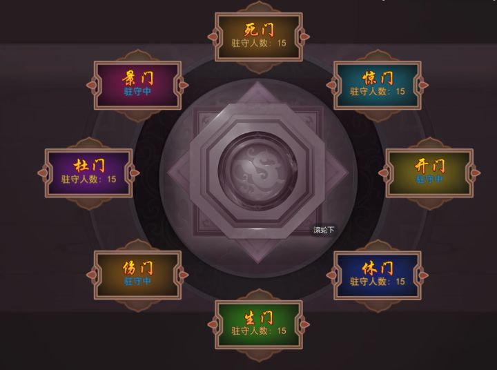 如图所示,阵法分为8个门,每个门最高6级,初期解锁阵法后,一定要争分夺秒去占领一席之地,最多占领3门,每门持续24小时,切忌要衔接上,因为提升阵法等级需要消耗阵法点数,无论氪不氪金每分钟固定2点,一天一个位置产2880点,3个位置则8640点,很缺、很缺、很缺!