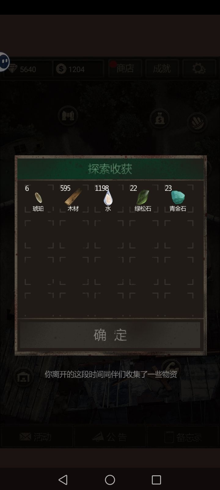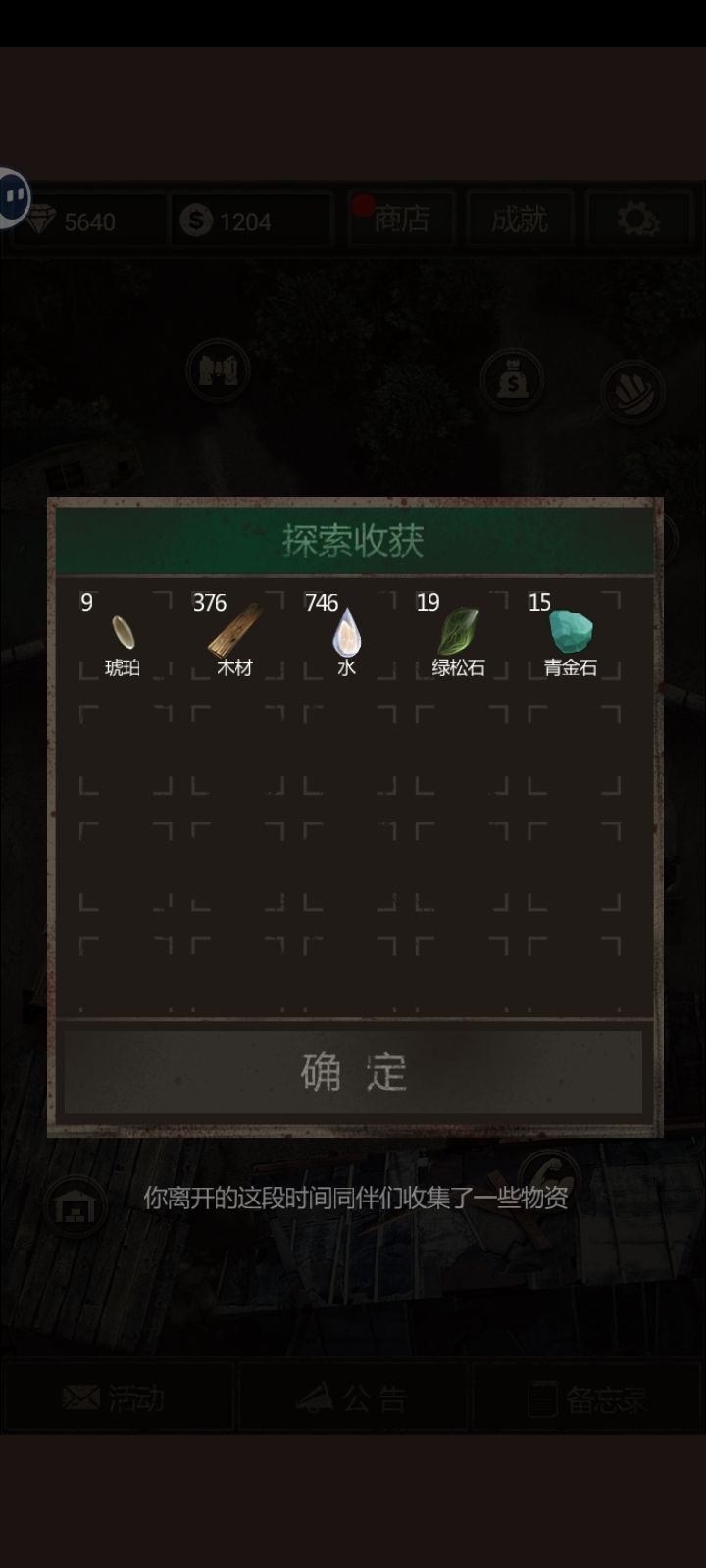 在人力产出(挂机效率)999%情况下,可以产出3742份水、1869份木头、39个琥珀、68个青金石、75颗绿松石。并且物资爆率是随机的