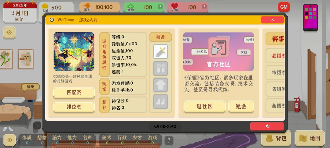 可以看到,游戏系统东西还是挺多的,游戏系统中还多了“游戏理解”和“操作手速”的属性,这些属性直接关联到“走位”“格挡”“特殊操作”等操作的成功率。