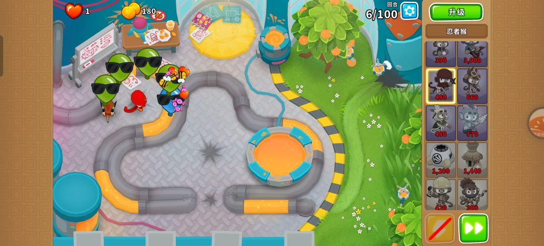2,旁边出一个海盗猴,先升到420,在配上猴村220,最后升级520,比上路法师猴还好的过渡