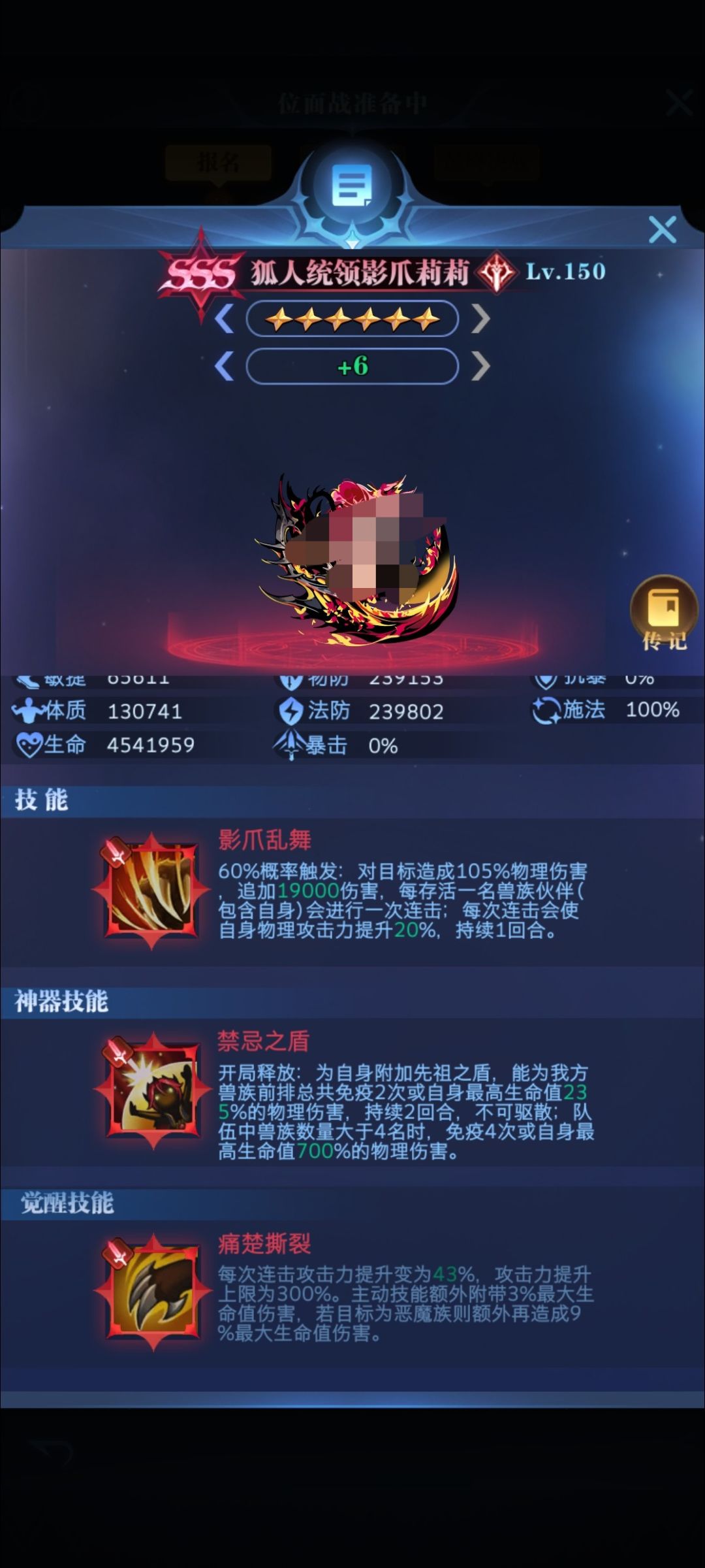 觉醒技,提升了主动技能的叠攻,和额外的最大生命值百分比伤害,再也不用担心一回合弄不死常规六恶魔了。