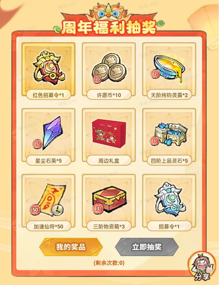 - 首次分享活动页面可获得1次抽奖机会;