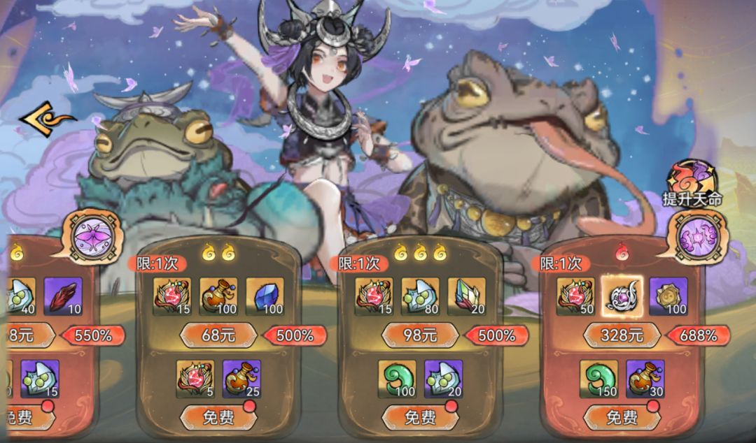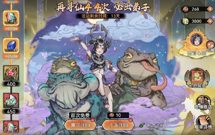 将专属弟子的天命提升至指定等级,不仅可以免费领取寻仙令、灵玉等奖励,还可以购买直购礼包,获取弟子专属道兵-灵蟾珠。