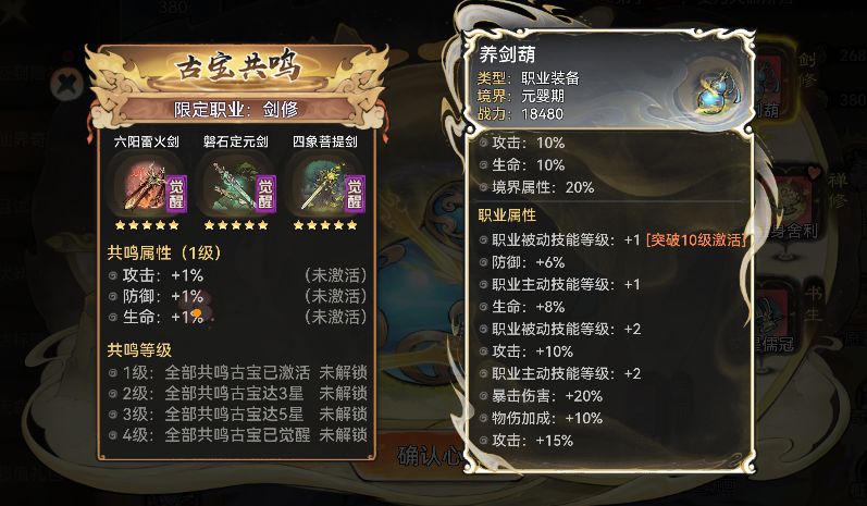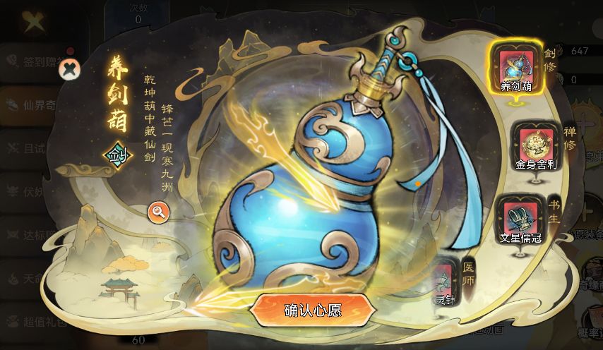 祖师可以选择养剑葫等不同职业装备设定为心愿装备,在抽取仙缘弟子的过程中有机会获得该职业装备的碎片。