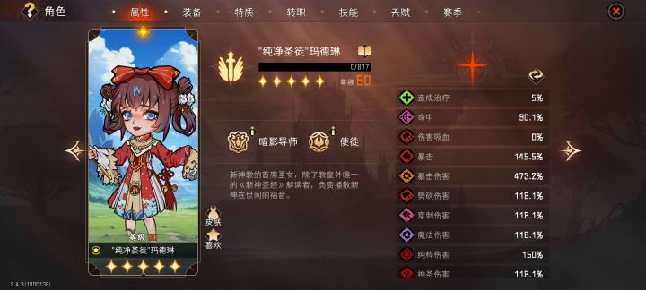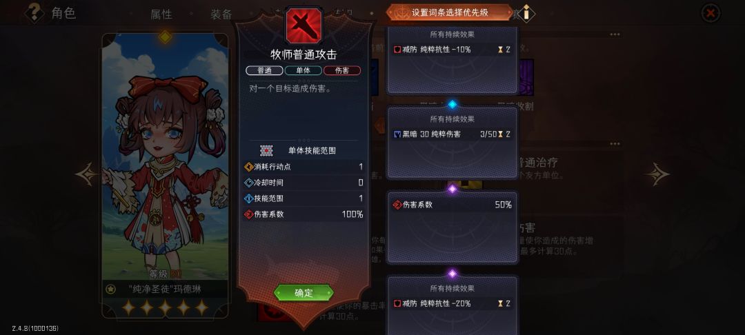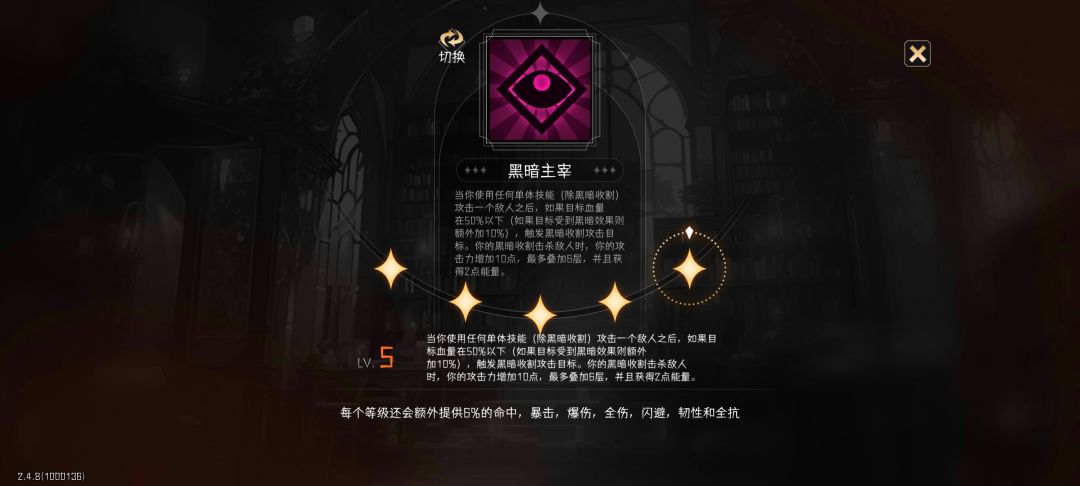需要注意的是普攻词条30属伤的隐形加成,如果没有点出对应词条,五项的含金量会显著增加,所以建议低命暗牧,低辅助光环,圣物还没升级满的选择五项,高命高练度选面纱。同时优先点出普攻减纯粹抗性词条。如果要冲35神罚,boss抗性会更高,可能还是要选五项,具体boss数值我不知道,所以不敢肯定。