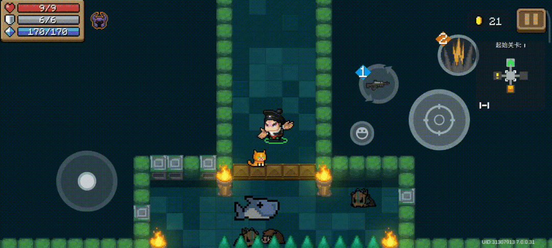 3.使用技能进行位移,都知道两点之间斜线最短,所以一般去宝箱房,可以尽量在拐角斜向释放技能,快速位移。