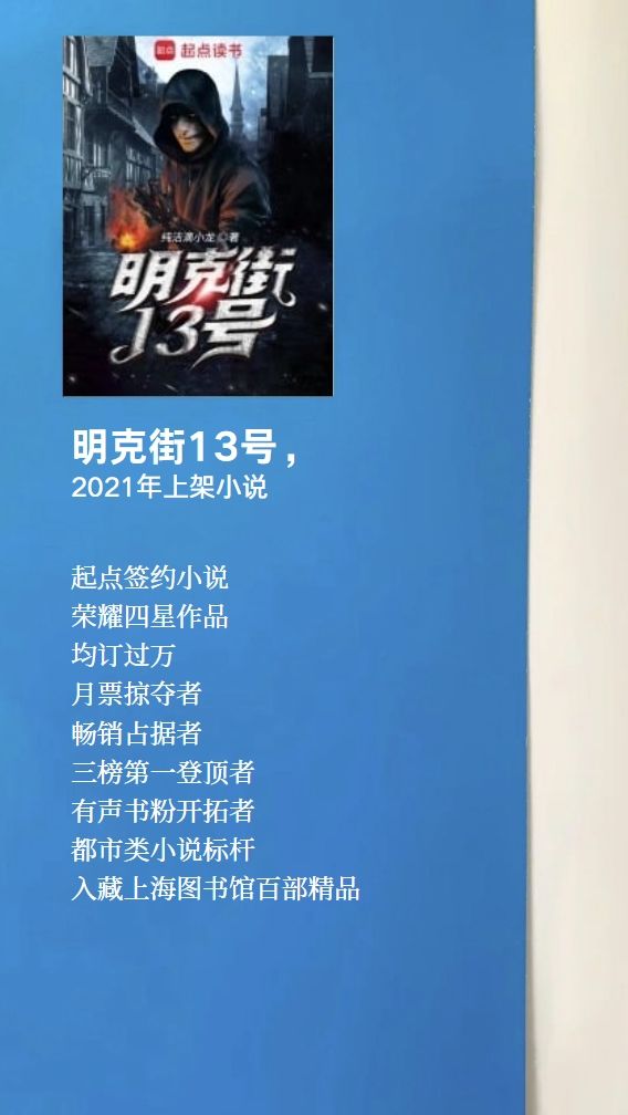 现在站在你面前的是月票掠夺者、畅销占据者、三榜登顶者......咳咳,正经来说的话,《明克街 13 号》 是纯洁滴小龙所著的一部网络小说,首发于起点中文网。
