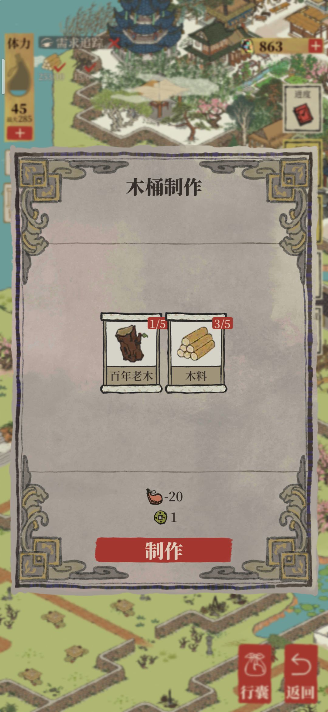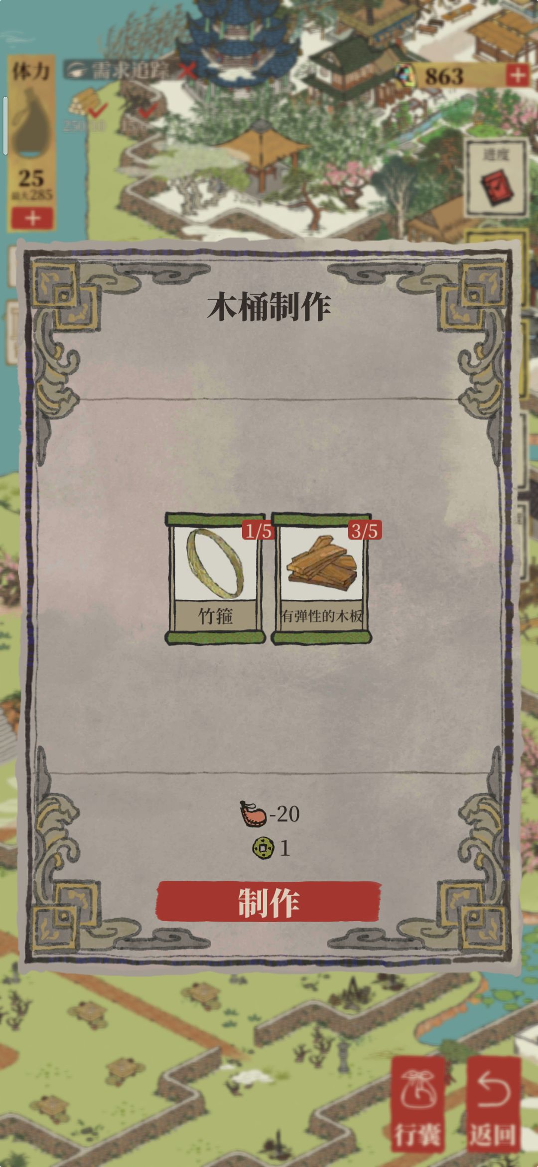 1竹箍3有弹性的木板20体力1铜钱=1唐家木桶,竹箍、有弹性的木板所废资源看上述4、其他