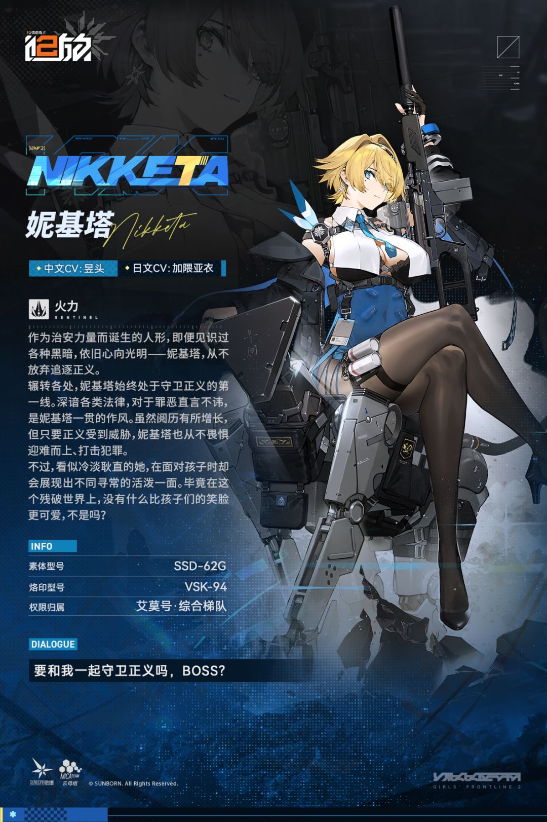 尊敬的指挥官,现在为您带来火力人形【妮基塔】介绍!