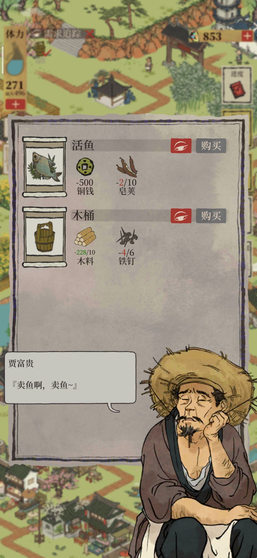 10木料6铁钉=1木桶,10体力≈2木料,20体力≈2铁钉