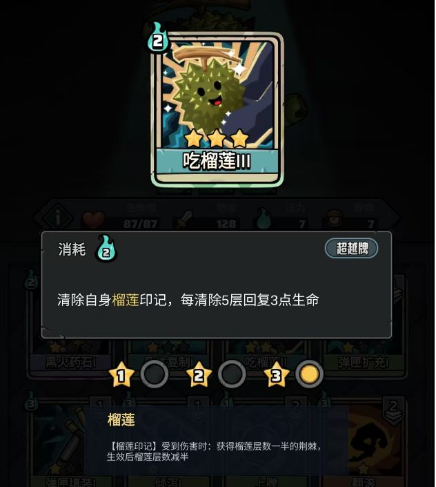 种族专属卡牌:“吃榴莲”,消耗印记恢复类卡牌。相信没有人转正前还不删除的,凑数的存在。