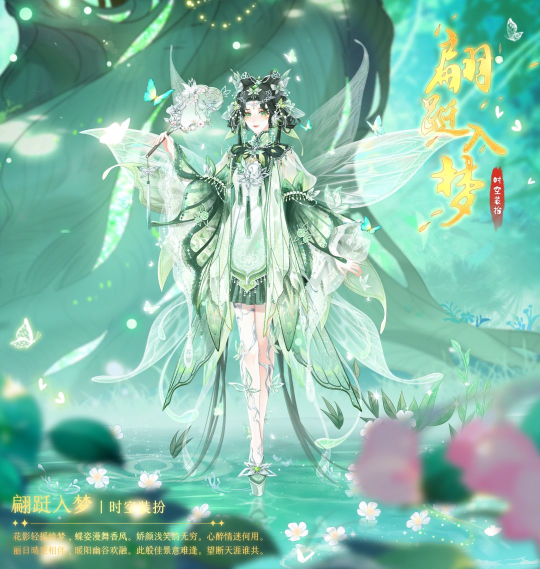 2、“翩跹入梦”套装的战斗效果包含入场技能【时空之临-振翾栩栩】和战斗中技能【时空之梦-梦有终时】;强化该装扮技能,可以提高升级属性的百分比,还可以提高在战斗中的表现效果