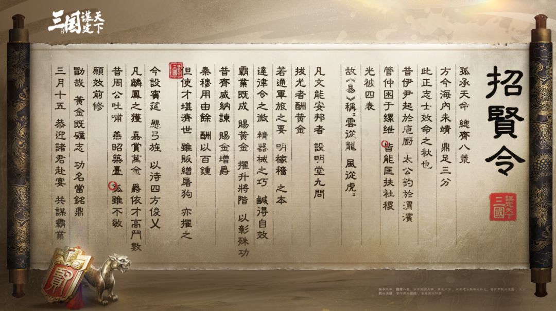 海内未靖,鼎足三分,此正志士效命之秋也。为广纳天下贤才,我们正式宣布:《三国:谋定天下》招贤主题服即将盛大开启!