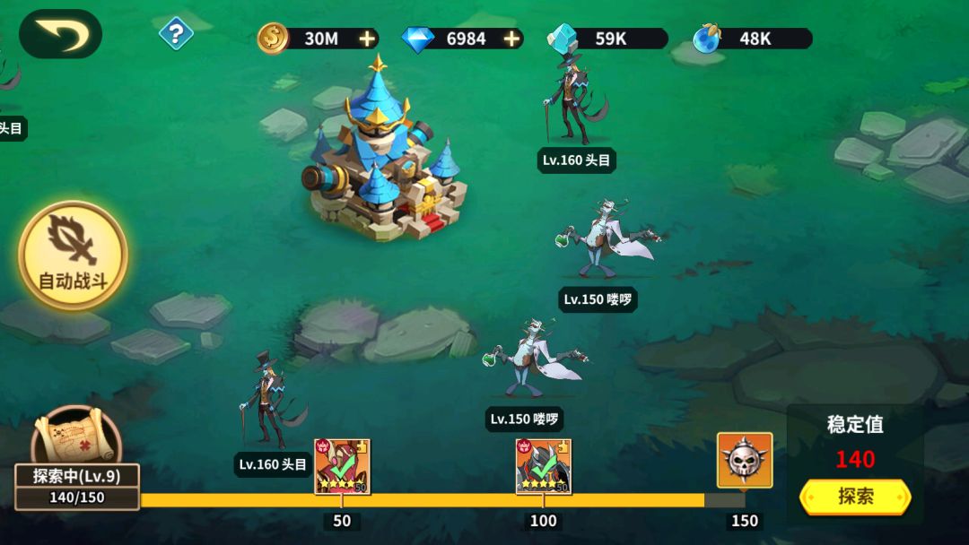 战斗胜利会相应的提升稳定值和探索进度,当稳定值为200时将无法和怪物战斗,稳定值在每天0点时清零。当探索达到一定进度,可以获得对应的奖励。当完成本层的探险后,会出现本层的BOSS。击败BOSS会开启前往秘境下一层的传送门。