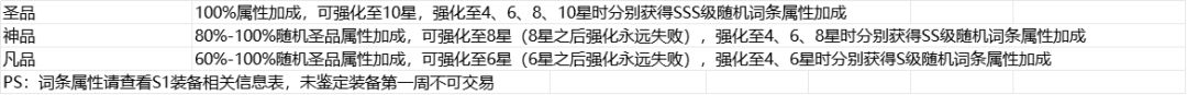 2. 全新S1装备,全新的属性加成系统