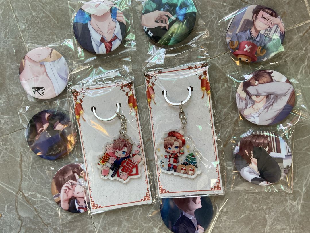 我们找店家定制了一些样品,因为国庆的缘故,好多店家没上班,目前到我们手里的只有徽章和钥匙扣。