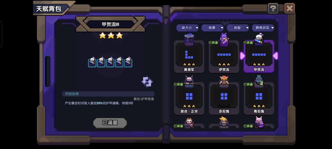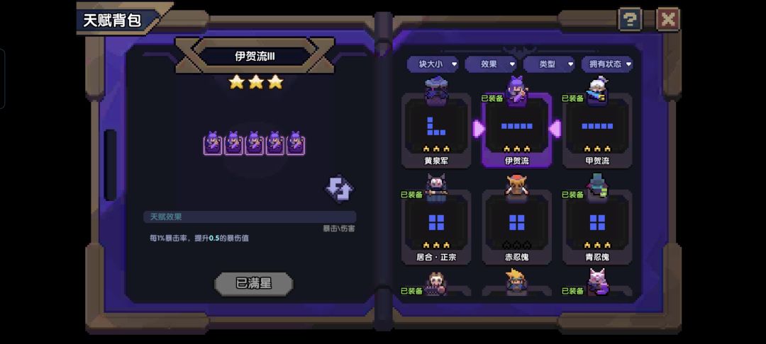 伊贺流,忍者的另一个核心天赋,暴击率转爆伤,任何情况下均推荐携带,使得忍者的暴击率溢出后不会成为无效属性