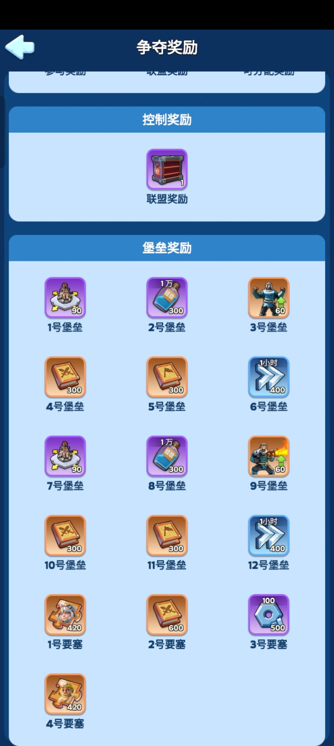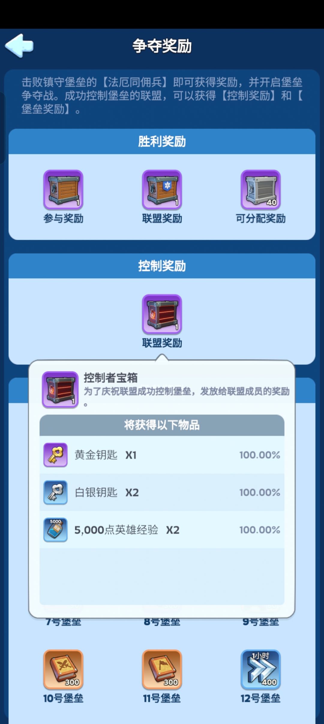 其次奖励,图二,堡垒控制奖励,参与驻防玩家占据满30分获得此项奖励,所以占领后不要着急走哦!