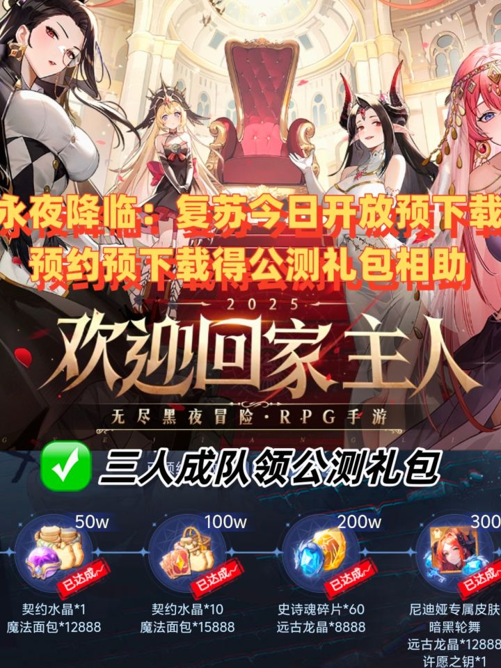 《永夜降临:复苏》手游预下载开启,黑暗奇幻之旅即将启程!官方论坛各类抽奖,黄金等参与就送。❤️