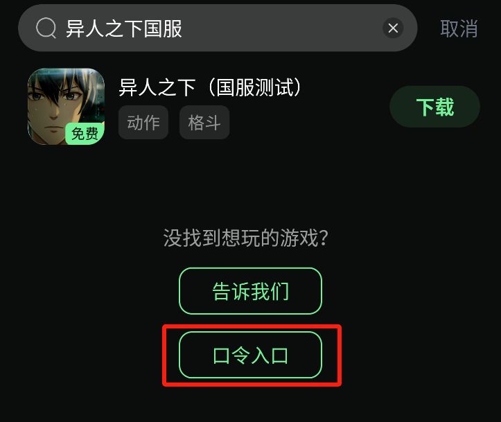 第三步:奇游内搜索【异人之下国服测试】点击下载,即可下载游戏安装包