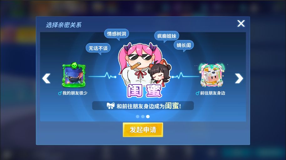 不同的亲密关系会显示不同的图标,这是贴贴的图标,兄弟和闺蜜的图标是什么样子就自己去探索吧嘿嘿嘿!