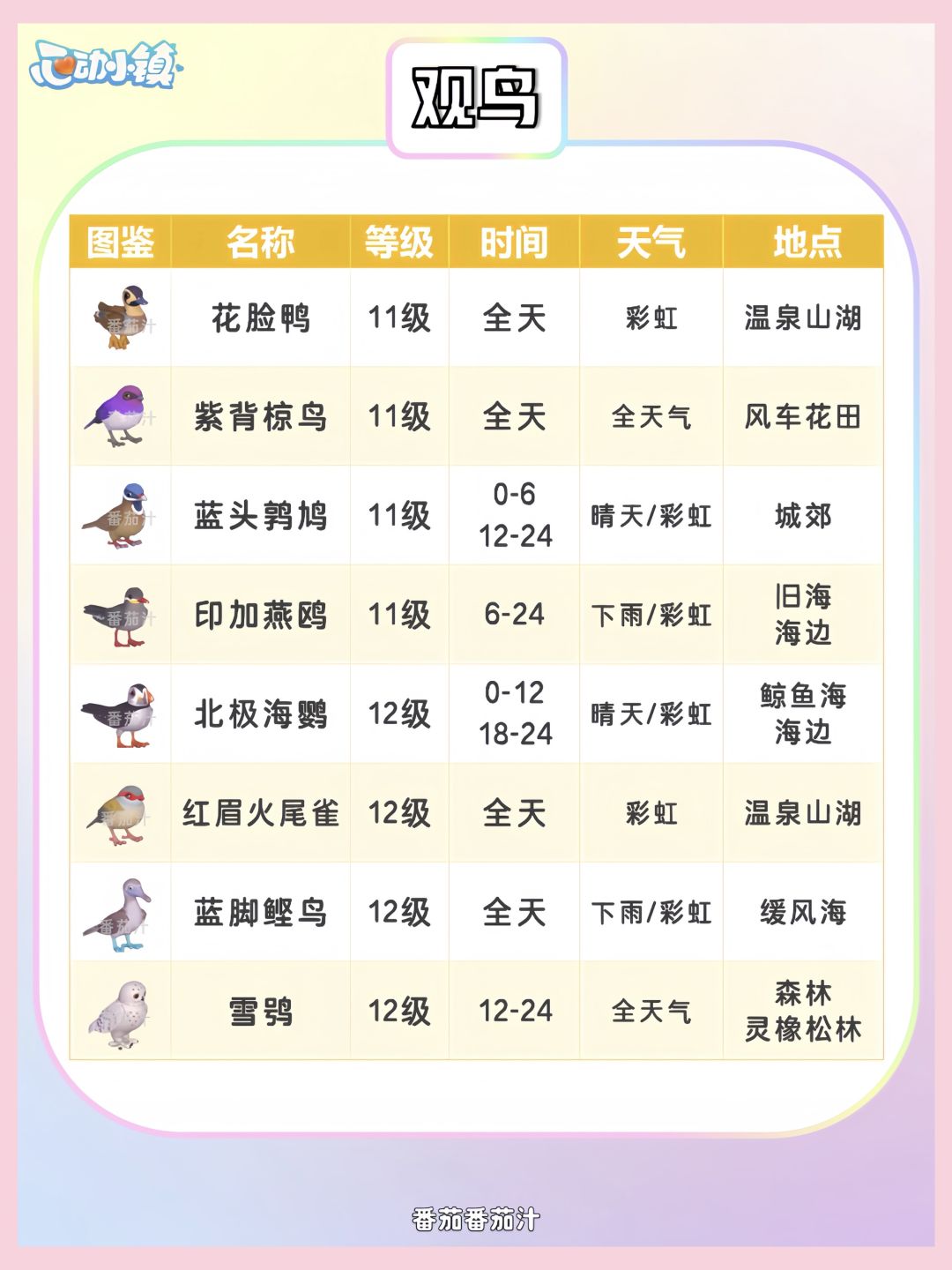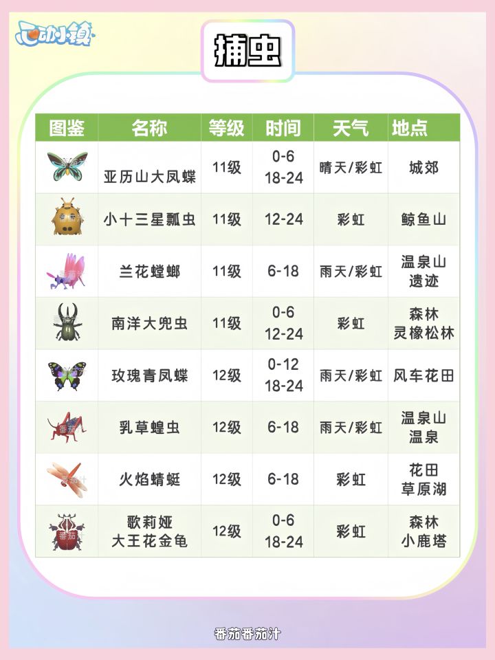 心动小镇 11-12级捕虫钓鱼观鸟图鉴攻略