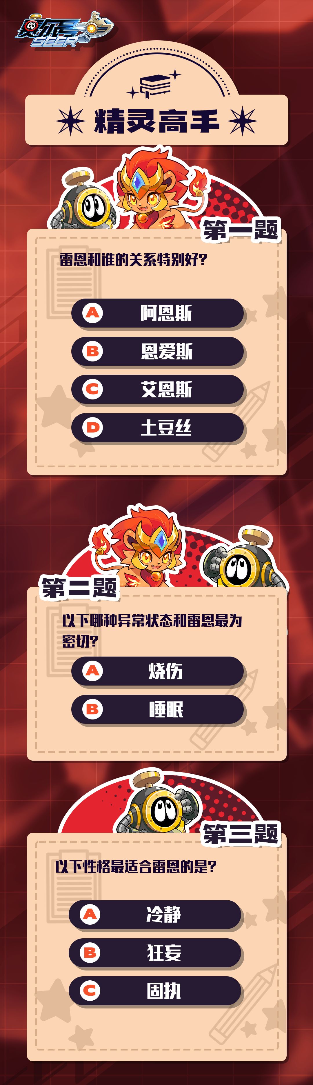 雷恩做客新一期精灵高手,赛尔们能否答题成功呢~