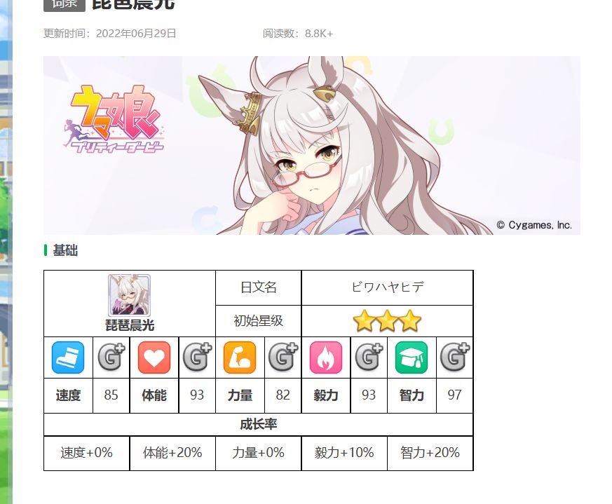 马娘【琵琶晨光】角色属性介绍~