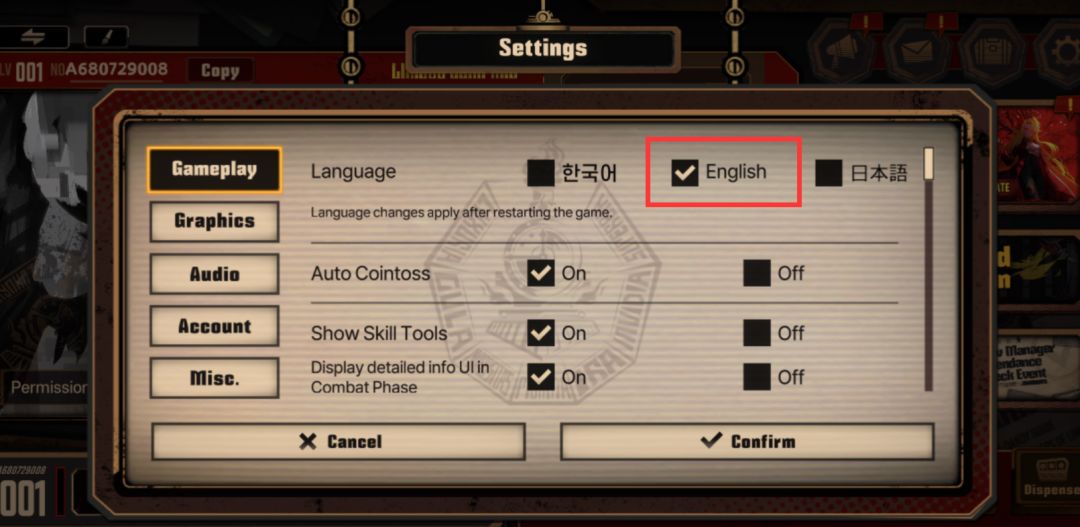 在语言选择处选择【English】选项,然后重启游戏即可。