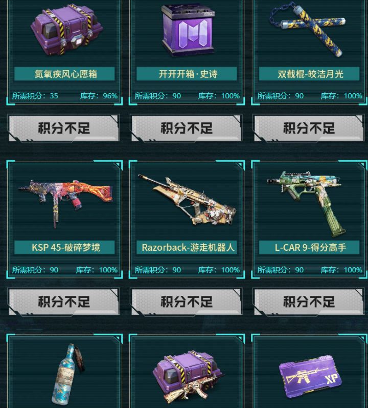积分可以兑换图内道具,重点是换这个全网一份的“开开开宝箱(史诗)”,这个主要能出红枪碎片/橙枪碎片/橙近战碎片/红枪物体体验卡/全新迷彩子枪;